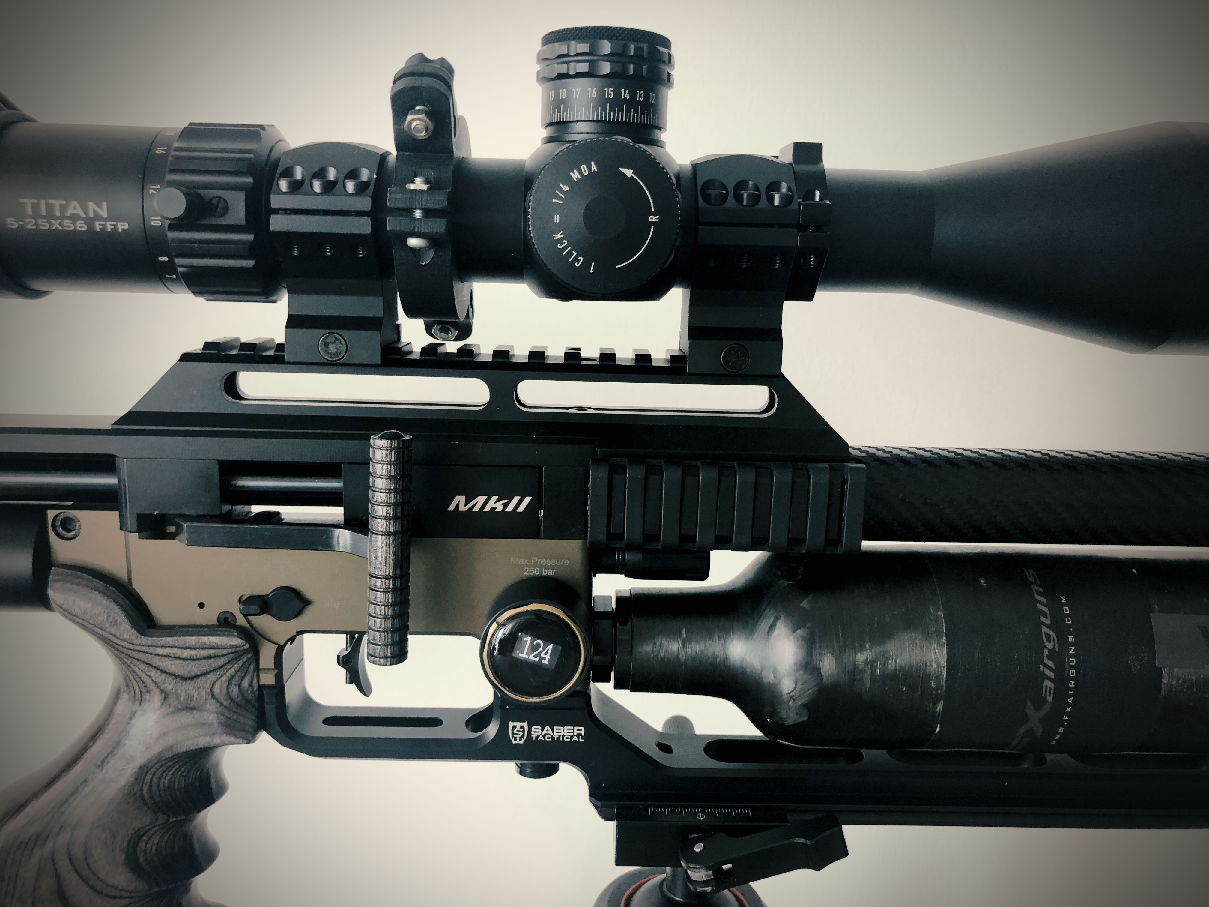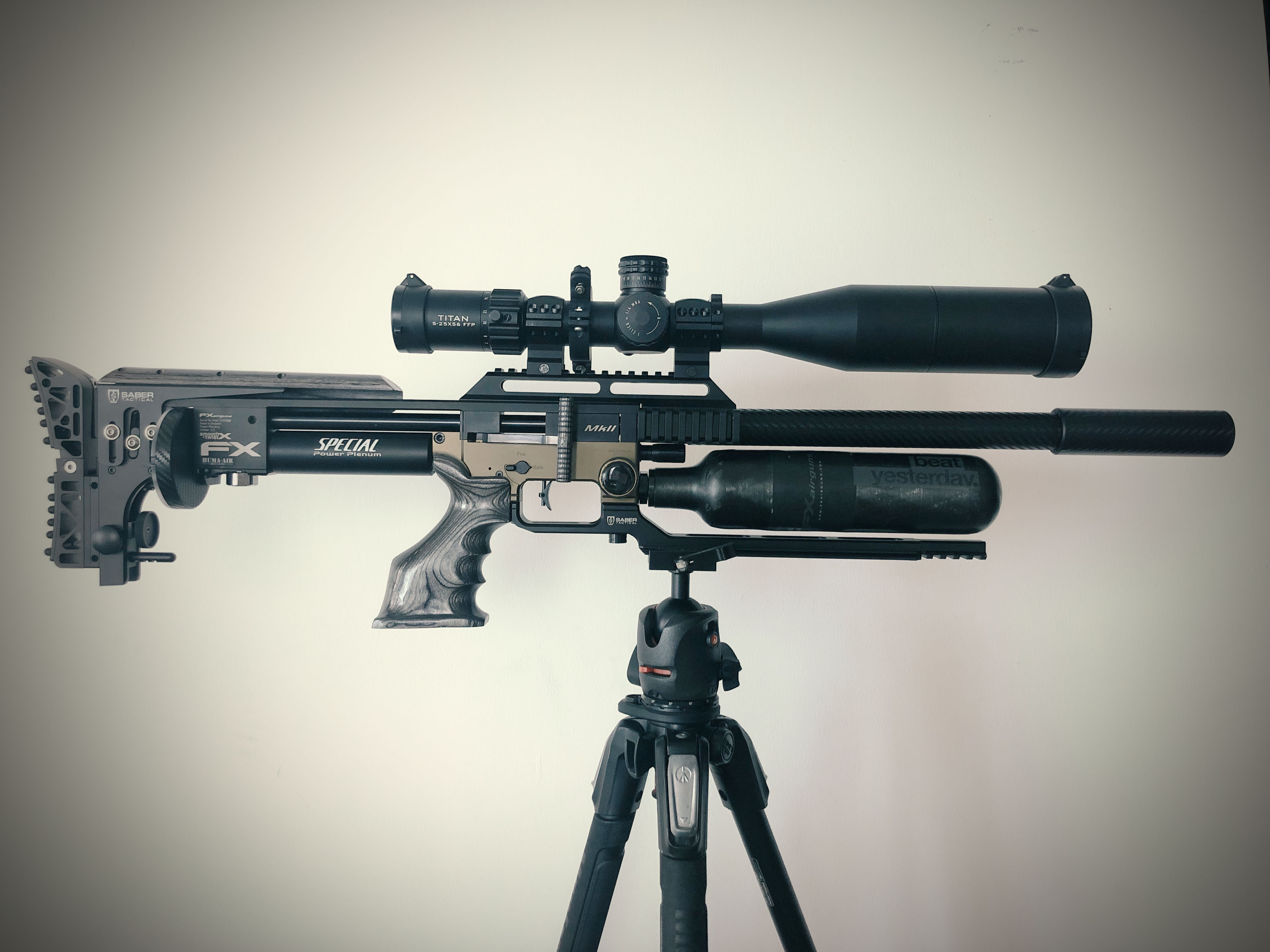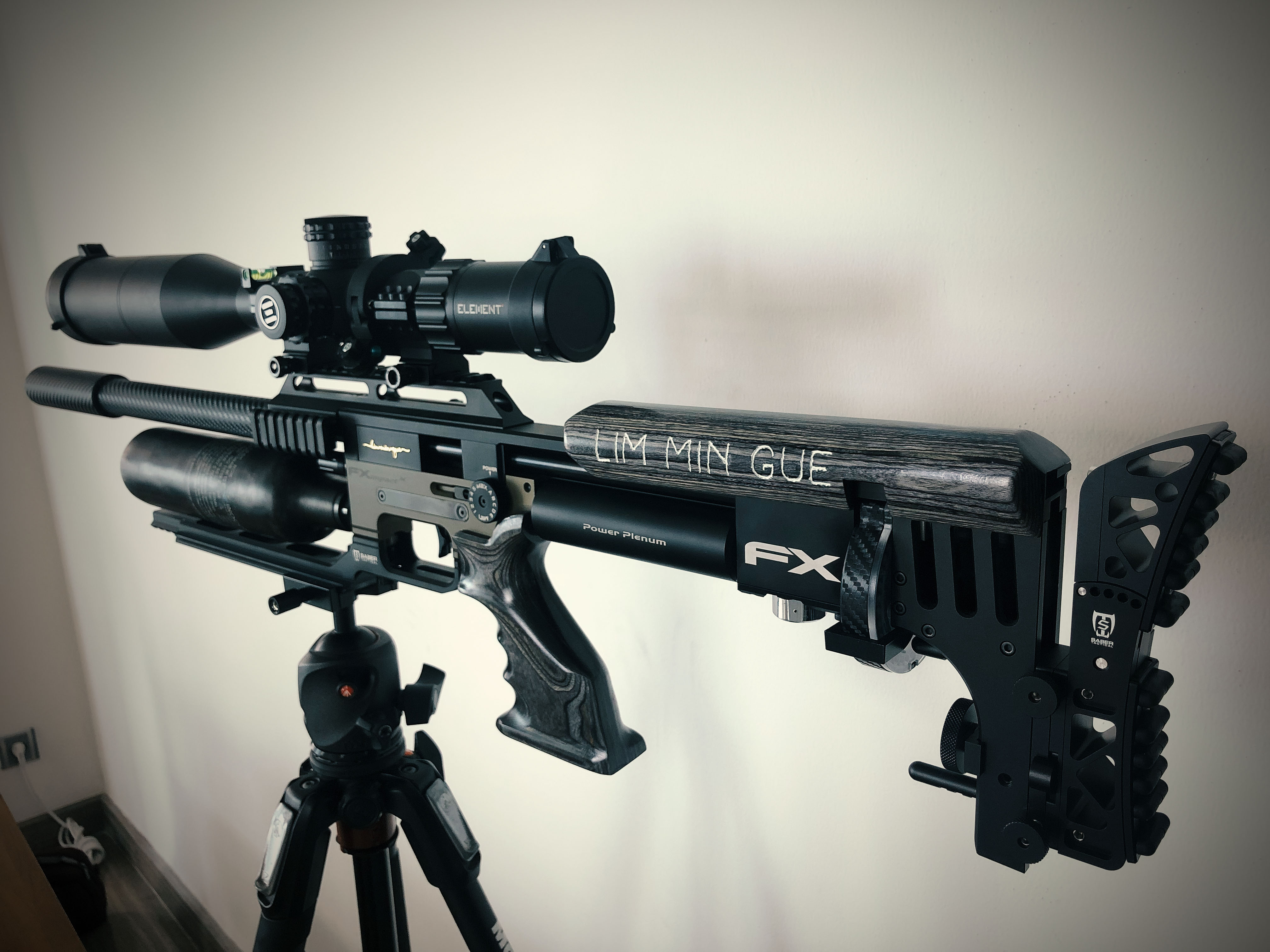 공기 압력계도 Digital로 Upgrade하고... 필리핀 친구의 도움으로 Grip 등의 손이 닿는 부위를 Wood로 DressUp 할 수 있었다. Saber Tactical 사의 ARCA UnderRail, Cheekriser, Adjustable ButtStock 으로 Tuning을 했고 Carbon Sheet로 Barrel을 DressUp했다.