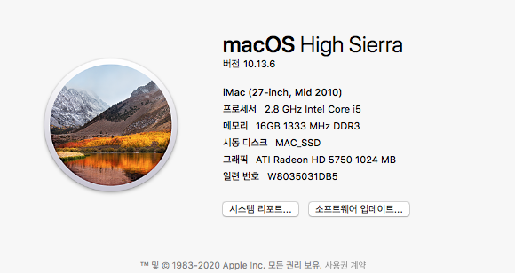 이제는 더이상 OS의 Update 지원을 받지 못하는 모델이라 OSX High Sierra가 최종 지원 OS 이기 때문에