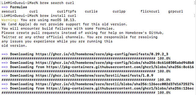 curl 설치를 하려고 하면 뭔가를 자동으로 많이 설치 한다. 어쨌든 알아서 해줄테니 brew를 믿고 기다리자.