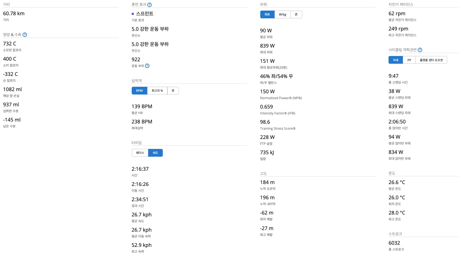 Distance 60.78 km | Time 2:16:37 | Speed 26.7 kph | Elevation 184 m