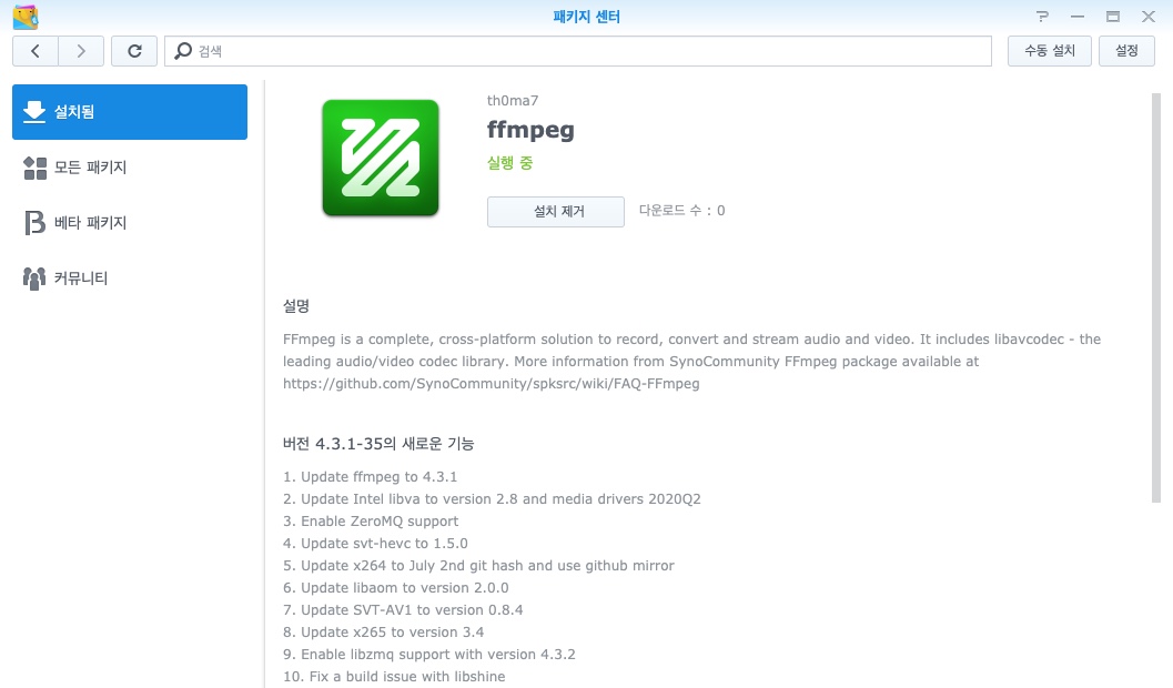 만약 Video Station 자체가 Update된다면 FFmpeg Wrapper 자체를 재설치 해줘야 한다.