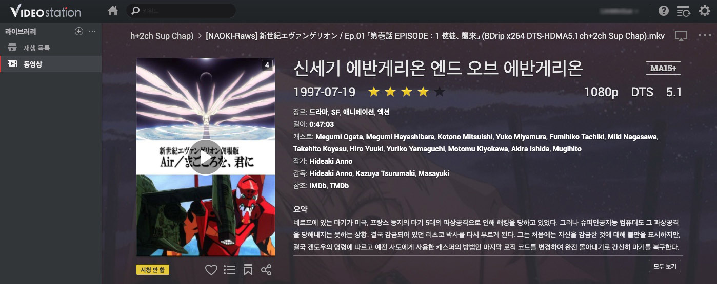 이제 아까 실행을 중지했던 Video Station을 실행해주면 DTS Codec 파일이 재생되는 것을 확인할 수 있다.