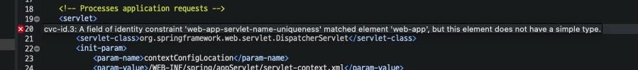 cvc-id.3: A field of identity constraint 'web-app-servlet-name-uniquensess' matched element 'web-app', but this element does not have a simple type.