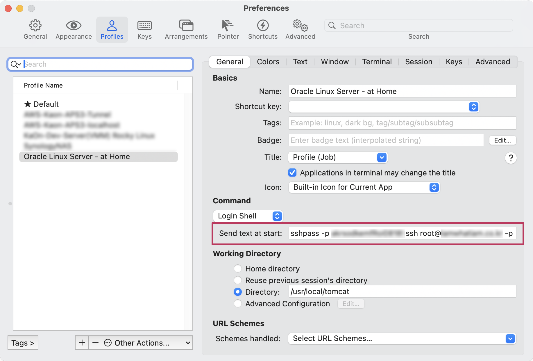 매번 접속 할 때마다 타이핑을 하는건 의미가 없으니 iTerm 의 profile에 등록해서 사용하면 된다.