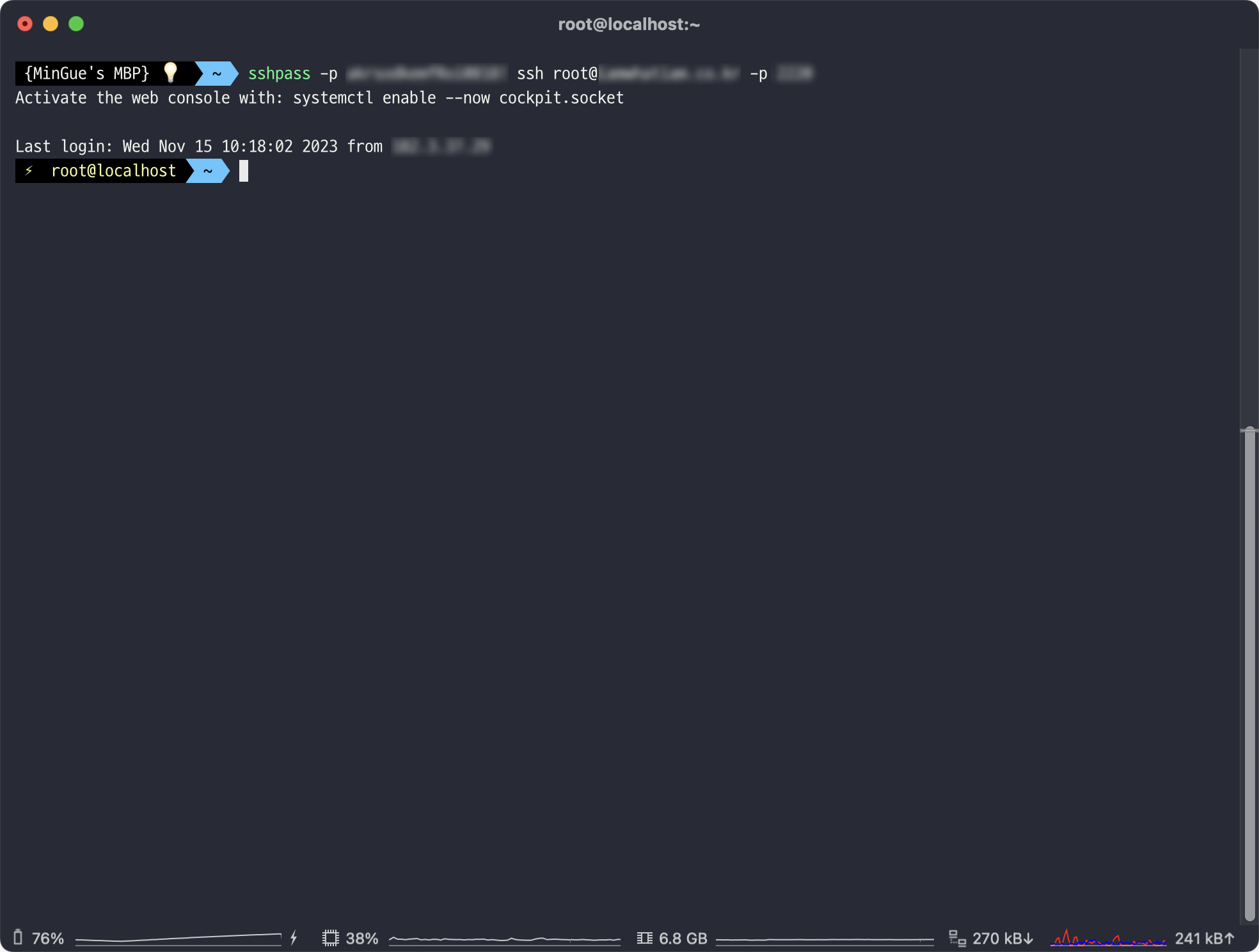 이제 sshpass 를 이용해서 접속시 패스워드를 자동 입력하게 해보자.