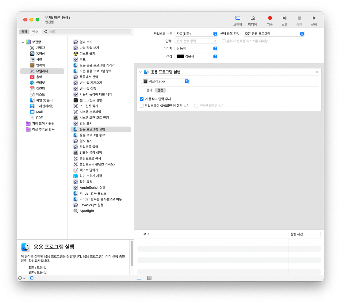 먼저 Automator를 이용해서 계산기를 실행하는 서비스를 생성한다.