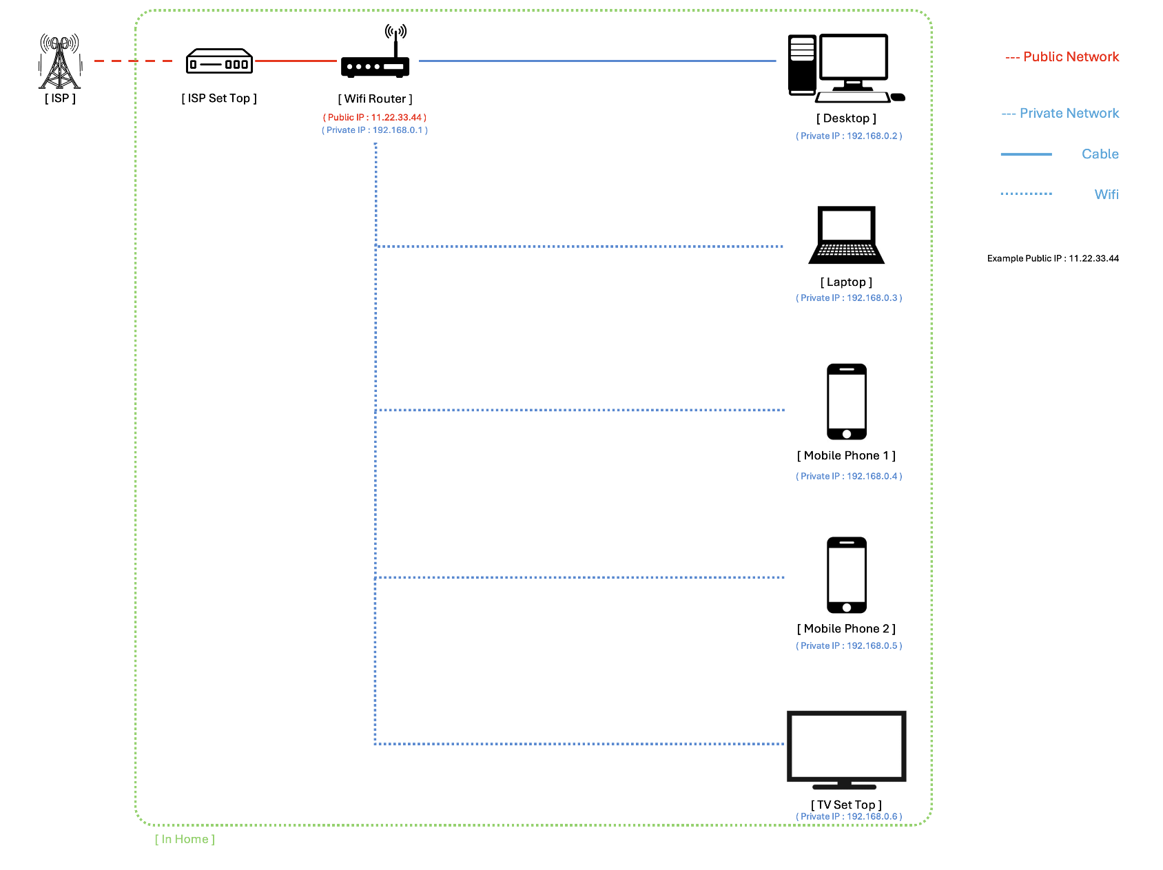 ISP에서 할당한 Public IP - 공인 IP (전세계 유일한 인터넷 주소)는 ISP Set Top에 할당 된다.
