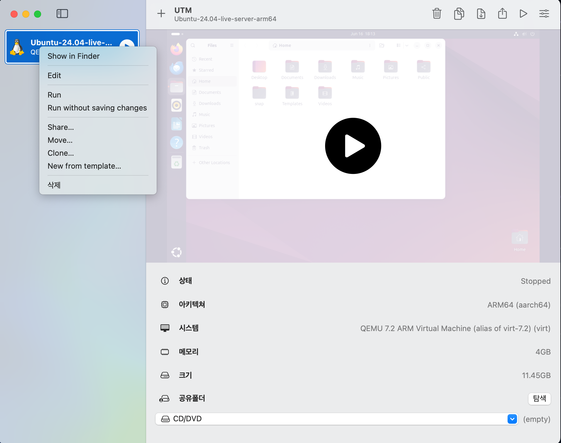 | Mac에 UTM을 사용하여 Ubuntu Linux 설치해보기 (0) | 2024.06.16 |