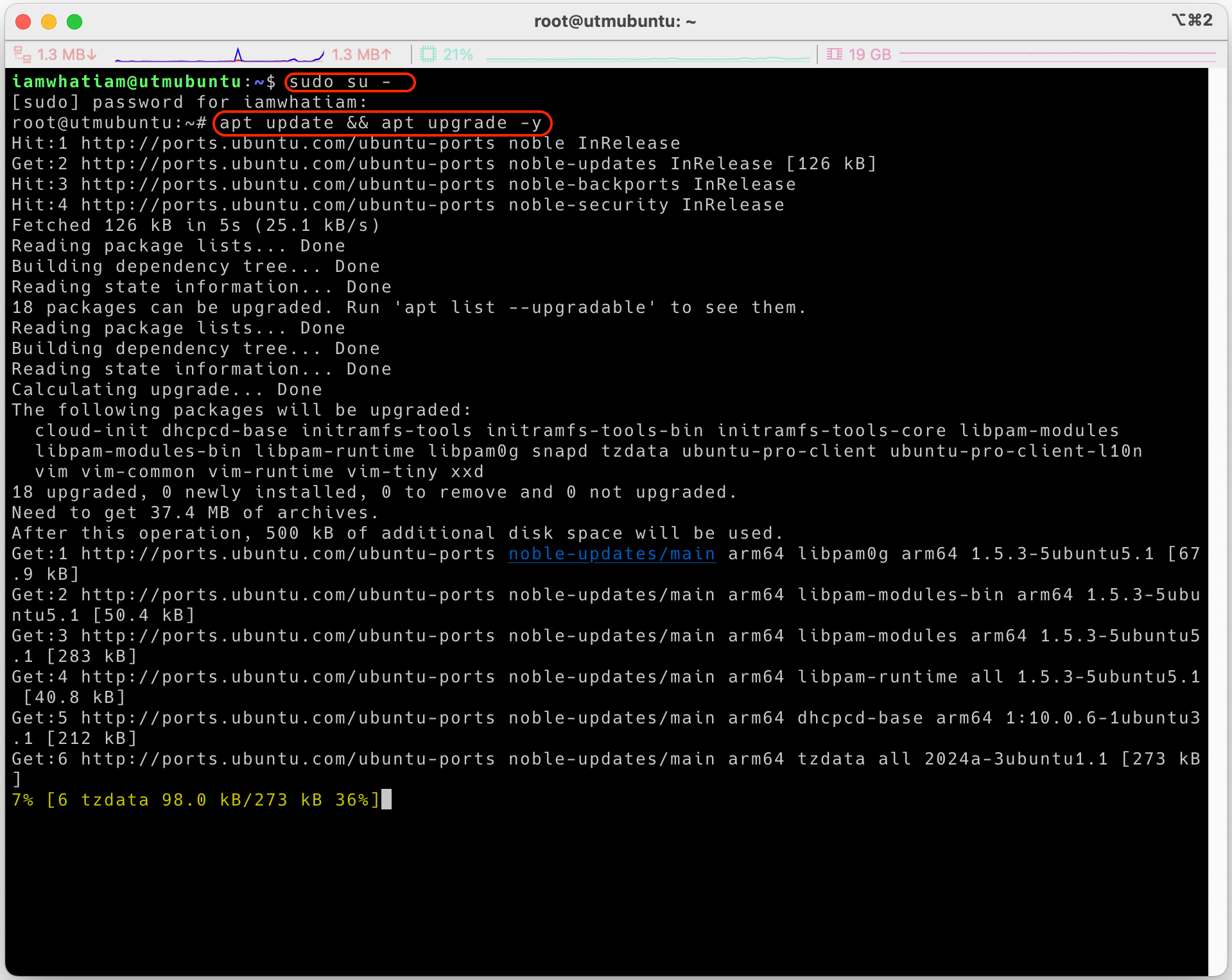 접속된 김에 정상적으로 작동하는지도 확인 할겸 ubuntu server를 최신 상태로 업데이트 해보자.
