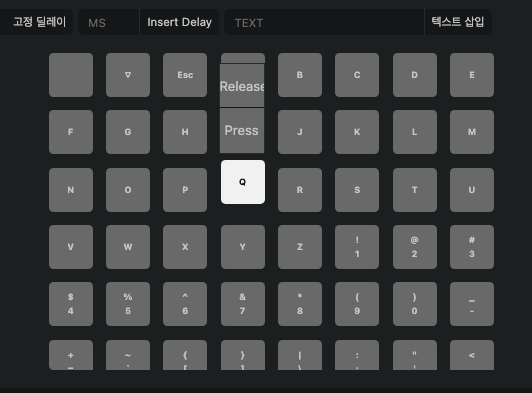 오른쪽 키배열에서 추가하고자 하는 키인 Q를 누르면 그 위로 Release 와 Press 가 보여진다. 지금 해야 하는 것은 키가 눌리는 효과이므로 "Press"를 선택하자.