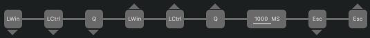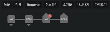 역삼각형은 키가 눌렸을 때를 의미하고 정삼각형은 키를 떼었을 때를 의미한다. 지금 상태에서는 Q 버튼이 눌리지 않은 상태이므로 Command(LWin) 키와 Control(LCtrl)키가 떼어졌을 때의 동작을 삭제해준다.