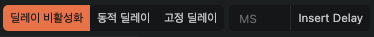 화면 중앙 쯤에 위치한 "딜레이 비활성화"를 선택하고 그 오른쪽으로 있는 MS 값이 표기된 부분에 1000 이라고 기록하고 "Insert Delay"를 눌러 입력하자. MS는 Milli Second 니가 1초를 기다리게 하려면 1000을 입력하면 된다.
