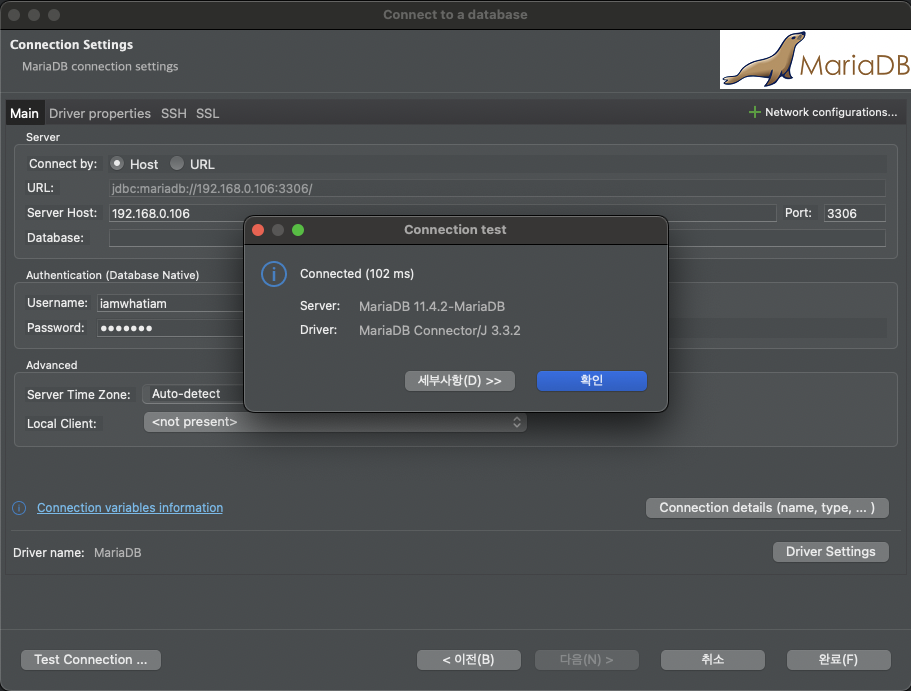 Linux 자체의 방화벽에 3306 포트를 오픈 후 MariaDB를 재기동 한다.