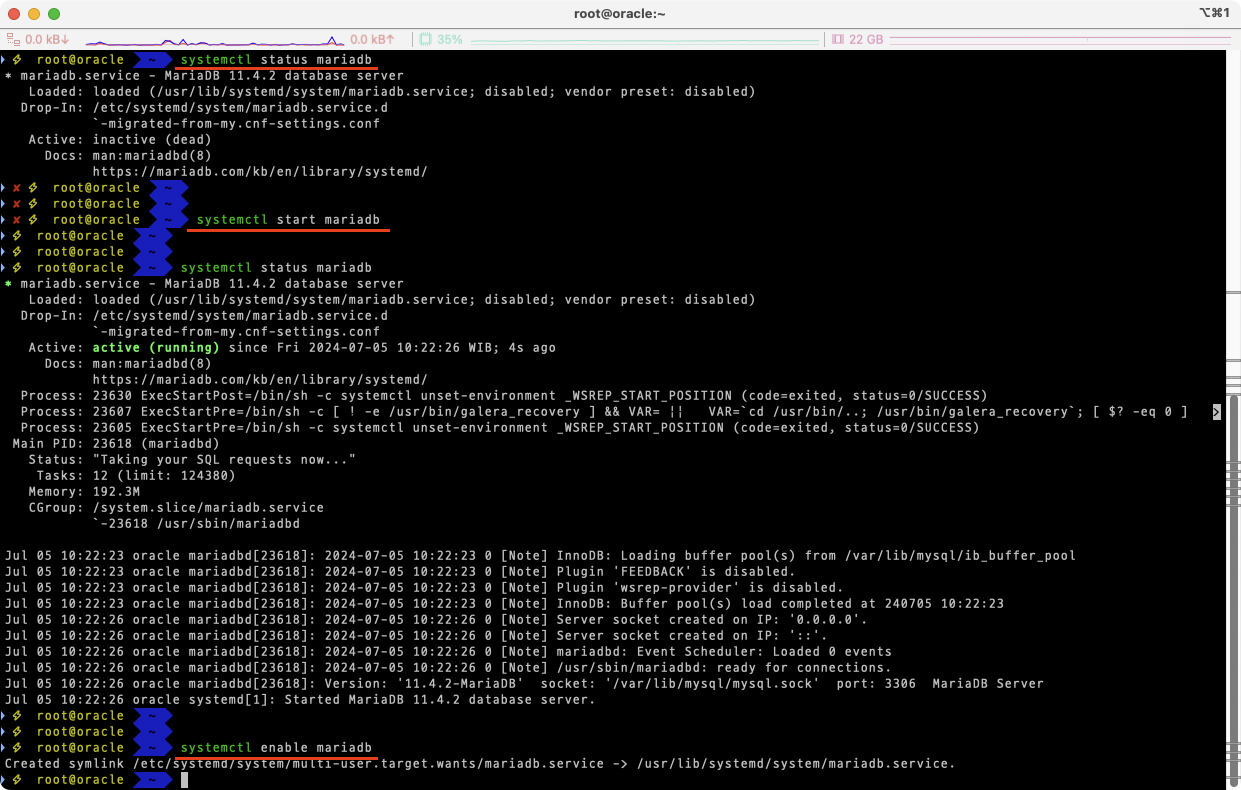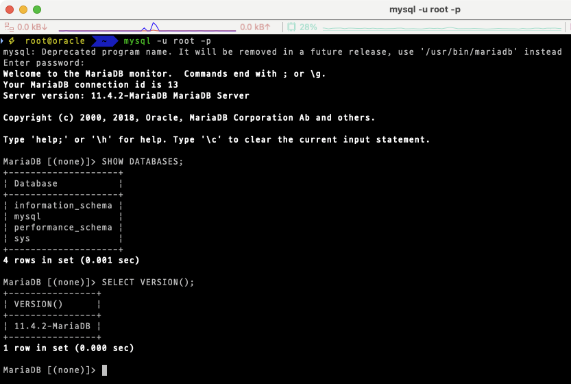 dnf Package Manager를 통해서 MariaDB 11.4.2 를 설치한다.