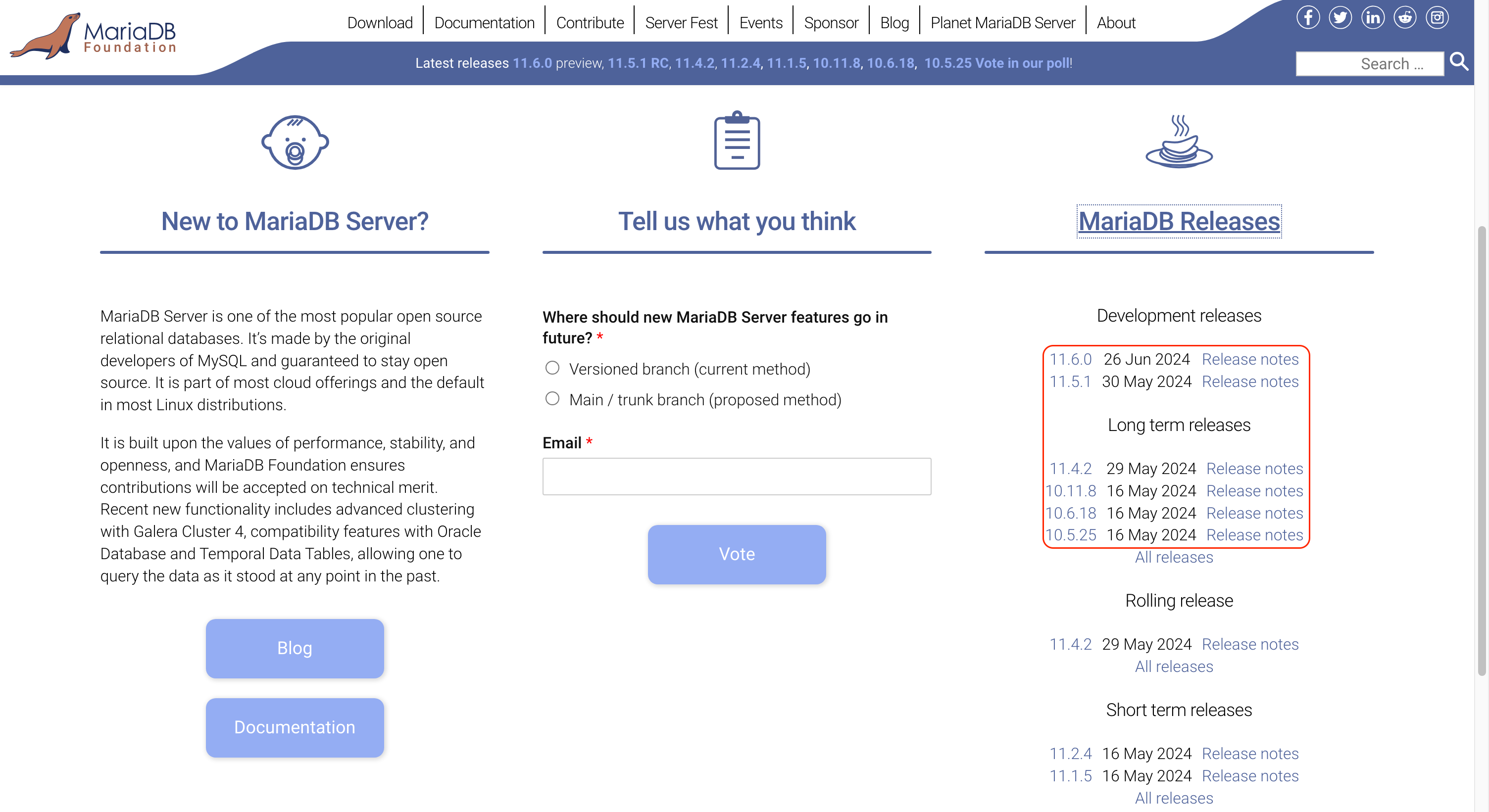 글을 쓰고 있는 현재 시점(2024년 7월) 기준으로 MariaDB의 최신 버전은 11.4.2 이다. (11.6 도 나왔지만 Preview 상태이니 정식 버전인 11.4.2를 최신이라고 하겠다.)