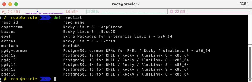 dnf Package Manager에서 사용할 수 있는 Repository를 확인한다.