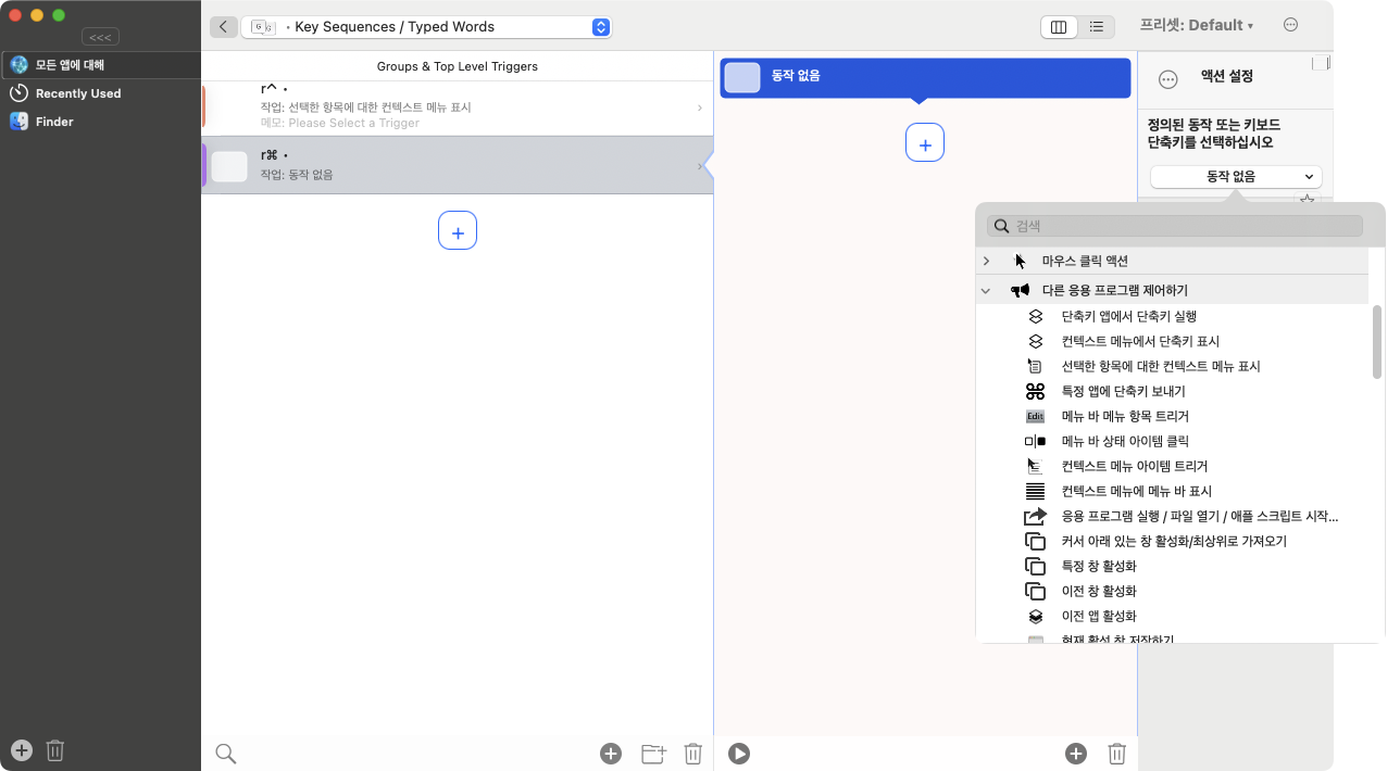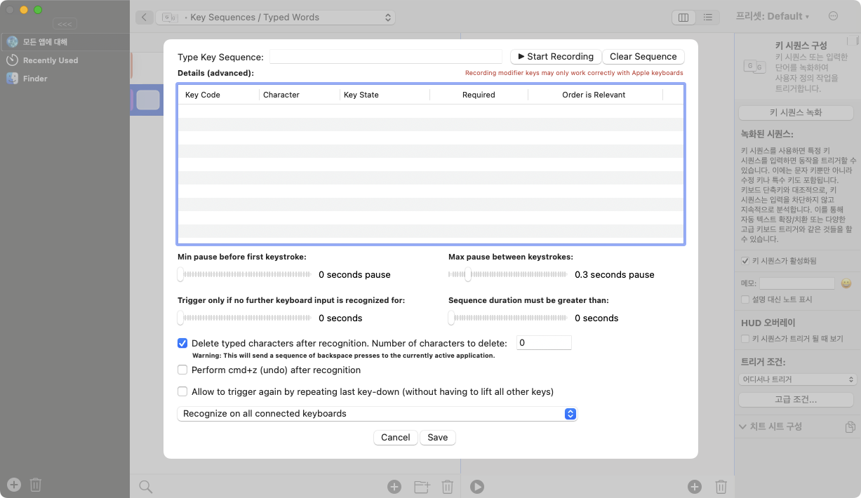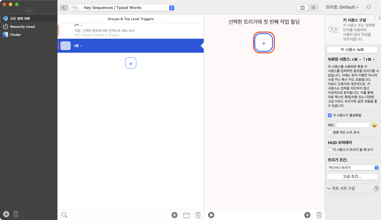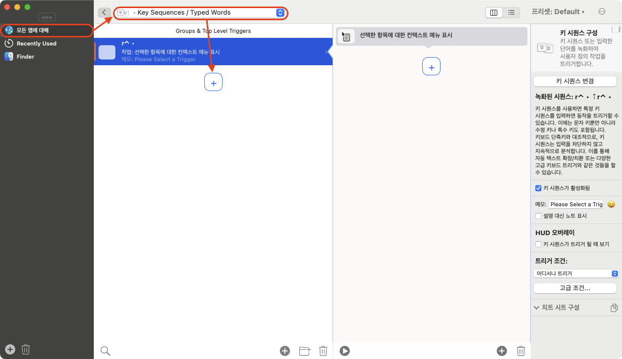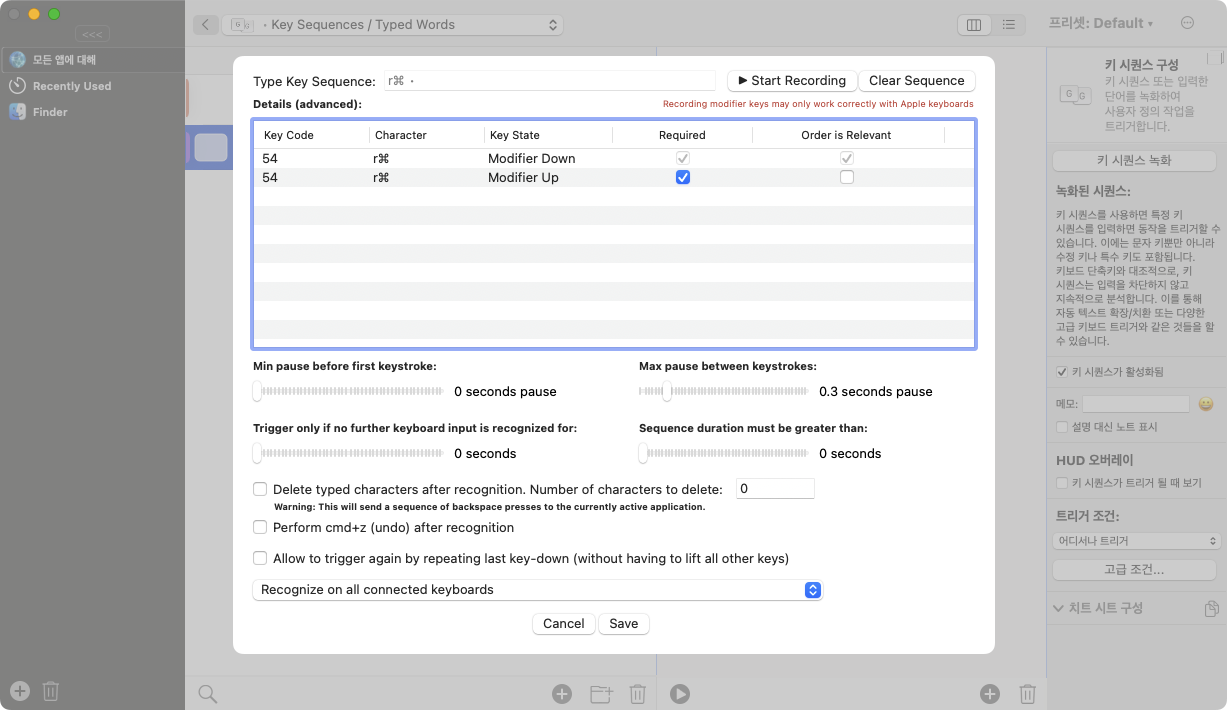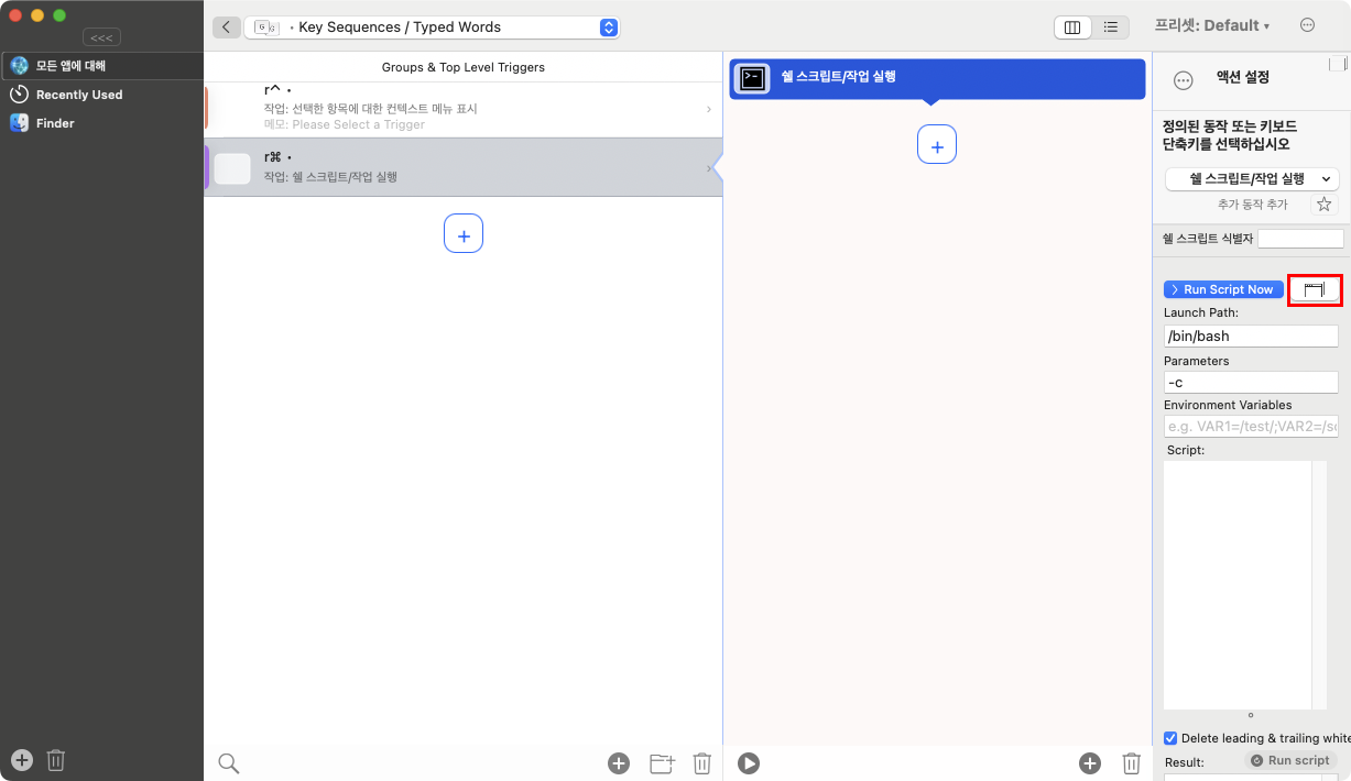 뭐 Script는 설명할 내용도 없다. 오른쪽 Command 키가 눌리면 해당 쉘을 실행하라는 내용이다. 저장 즉시 적용이 된다.