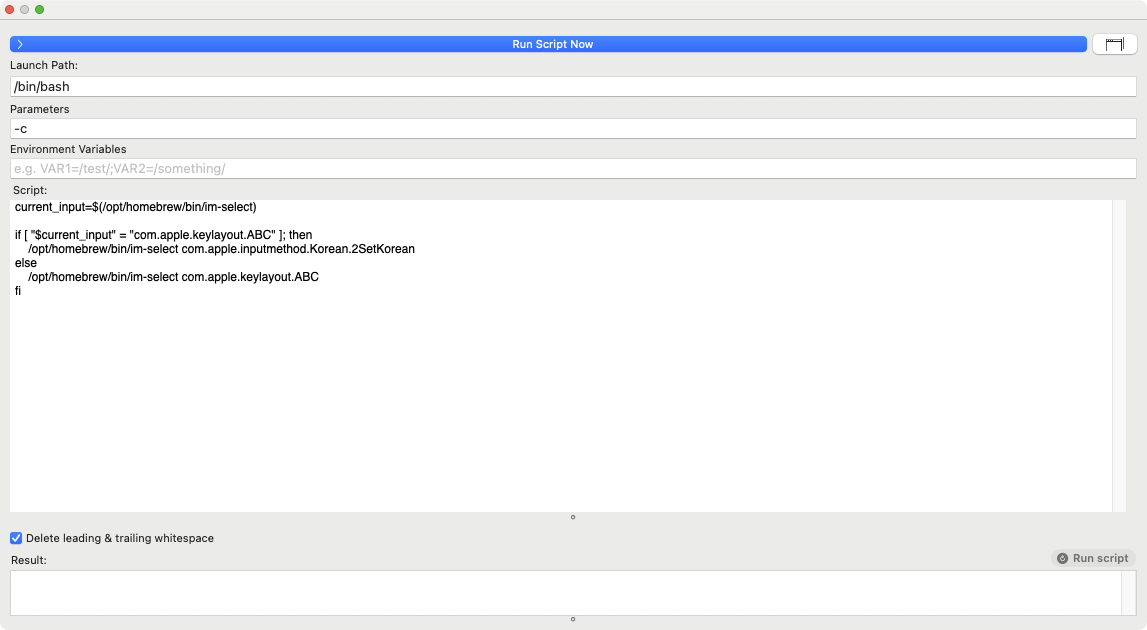 어쨌든 여기서 중요한 것은 im-select를 사용하는 방법과 그것을 활용해서 Shell Script로 키보드 입력 소스를 변경한다는 것이다.