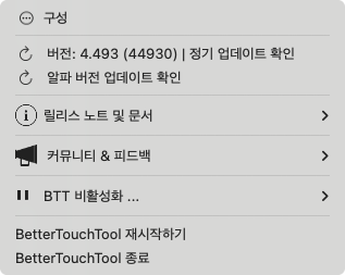 BTT(BetterTouchTool)를 이용한 방법