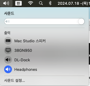 Desktop(Mac)과의 연결은 기본 제공되는 USB Cable을 이용해서 연결 했다. 별도의 어플이나 Driver가 필요하지 않다. PC와 연결을 하게 되면 아래의 그림처럼 Headphones 라는 Output Source 생긴다.