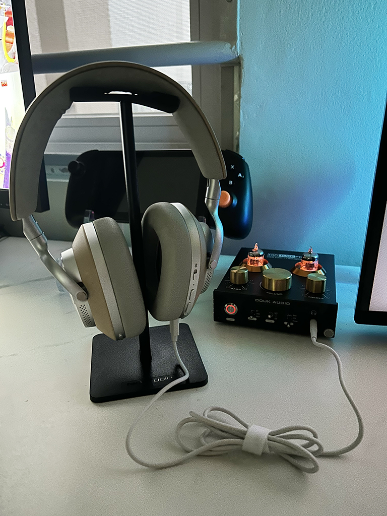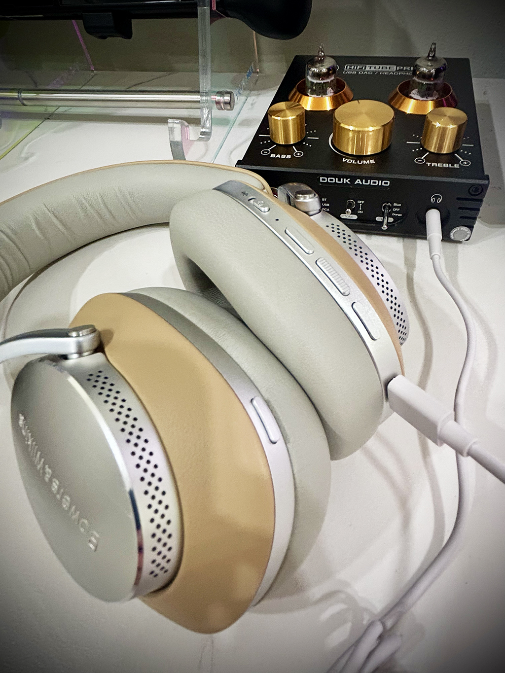 처음 구매하고 그냥 iPhone Bluetooth와 연결해서 들었을 때 느낌은 이거... 돈 값 못하는 허세 헤드폰이구나 라고 생각했다. 저음으로 웅개버리는 느낌에 해상도는 떨어지고... 그냥 Sony 나 Apple 헤드폰으로 살 걸 그랬나... 하는 생각이 들 정도로 실망을 했다. 일단 나의 경우에는 이동하면서 청음하는 경우보다는 책상에서 사용하는 경우가 많기에 DOUK AUDIO 진공관 Preamp에 유선으로 연결해 봤다.