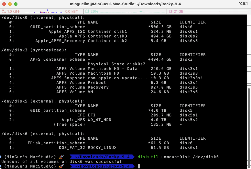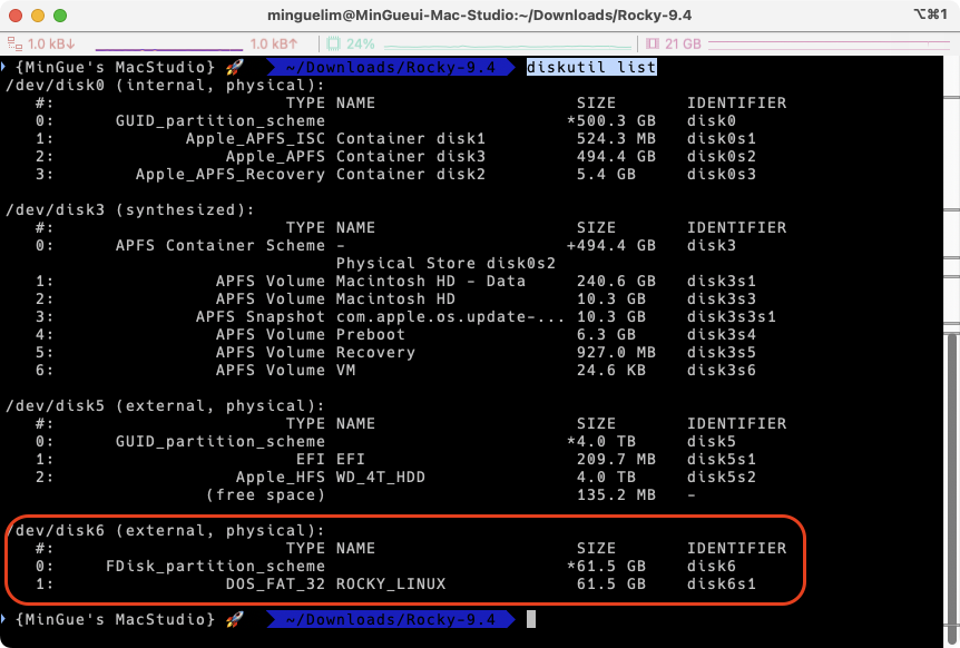 나의 경우엔 /dev/disk6에 할당 된 것을 확인할 수 있다.