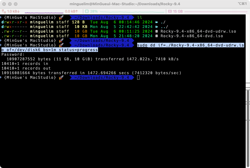 sudo dd if=./Rocky-9.4-x86_64-dvd-udrw.iso of=/dev/disk6 bs=1m status=progress