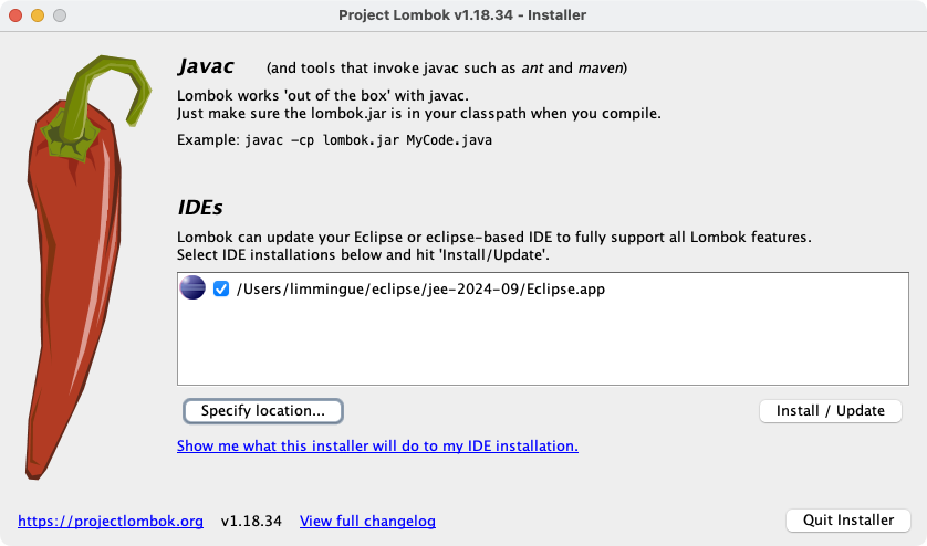 java -jar ./lombok.jar